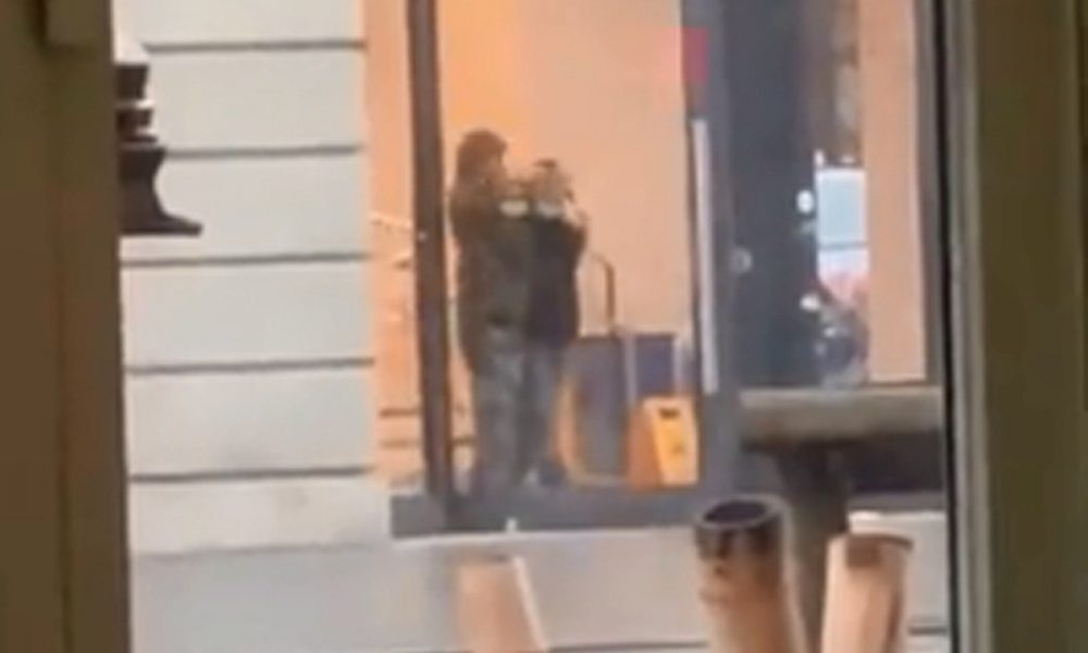 Snimke na društvenim mrežama prikazuju naoružanog muškarca kako iza stakla prodavnice drži jednu osobu, navodno zaposlenika Applea, te maše pištoljem. Hitne službe su na mjestu događaja, a ljudima je rečeno da se udalje.